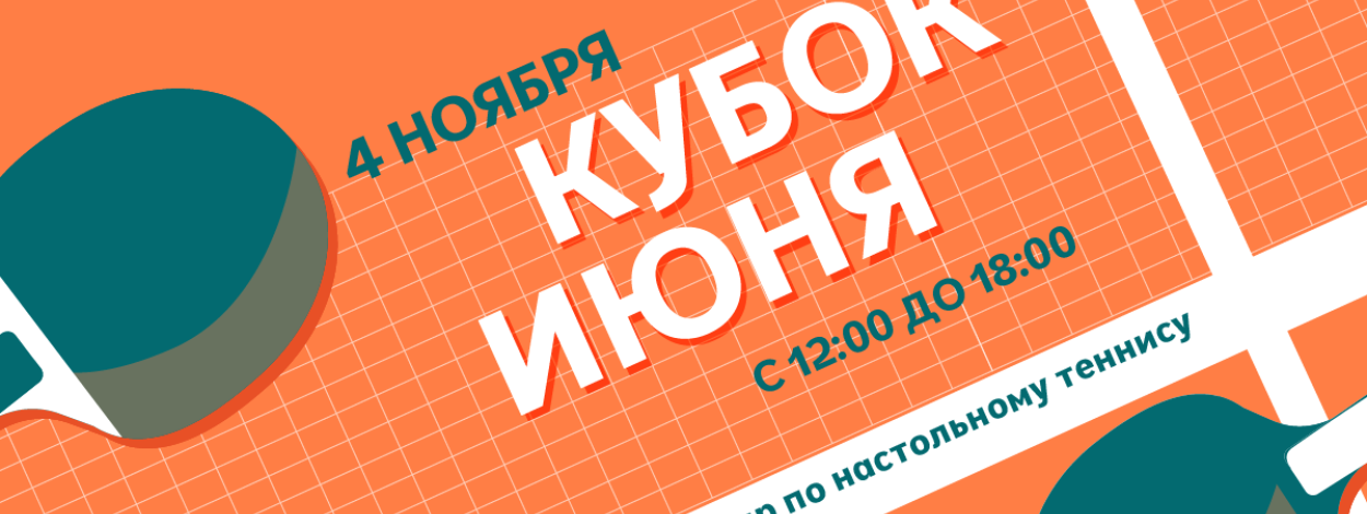 Любите скорость, азарт и динамичные поединки? Тогда приготовьте свои ракетки! ТРЦ «ИЮНЬ» совместно со школой настольного тенниса «Твоя подача» приглашает всех желающих принять участие в захватывающем турнире – «Кубок Июня»! Нравится настольный теннис? Это ваш шанс проявить себя! Независимо от того, новичок вы или профессиональный спортсмен, «Кубок Июня» – это место, где вы сможете показать свое мастерство, бросить вызов соперникам и, возможно, стать настоящим чемпионом! Как принять участие? Все просто! Зарегистрируйтесь для участия в турнире прямо сейчас по ссылке и получите шанс выиграть ценные призы! Что ждет вас на «Кубке Июня»? Увлекательные матчи между любителями и профессионалами. Особый сюрприз для всех гостей – мастер-класс проведет Хлызова Елизавета, мастер спорта, чемпионка Европы и России по настольному теннису! Учитесь у лучших! Проверьте свои знания и выиграйте призы в интеллектуальной викторине! Мы приготовили много приятных сюрпризов и веселых активностей для всех посетителей. Голосуйте за самых ярких участников и помогите выиграть умную колонку Яндекс.Станция Мини! Не упустите возможность стать чемпионом и зарядиться энергией настоящего спортивного праздника! Дата проведения турнира 04 ноября с 12:00 до 18:00, 2 этаж рядом с DDX в ТРЦ «ИЮНЬ» Регистрация открыта по ссылке